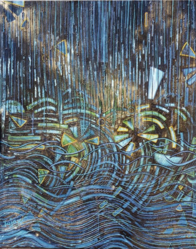 Gestohlen wurden drei abstrakte großformatige Bilder auf Leinwand, eine Schublade voll “Landschaften” in verschiedensten Techniken sowie Collagen, Aktbilder, Planeten- und Urknallbilder.