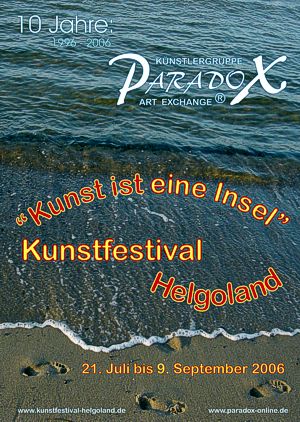 Bereits zum vierten Mal seit 1998 verwandeln die Künstler von PARADOX vom 21. Juli bis 9. September 2006 Deutschlands einzige Hochseeinsel Helgoland unter dem Motto „Kunst ist eine Insel“ in eine lebendige Galerie. Ausstellungen an den verschiedensten Orten im Innen- wie Außenbereich auf dem Eiland machen den roten Felsen zu einem Gesamtkunstwerk, das sich der Besucher im wahrsten Sinne des Wortes erwandern kann. Bildende Künstler mit Gemälden, Grafiken, Holzstichen, Collagen, Lithografien, Radierungen, Fotoarbeiten, Keramiken, Skulpturen, Installationen, Mal-Kreativ-Bildhauerkursen und vielen weiteren schöpferischen Ideen schaffen in Verbindung mit darstellenden Künstlern mit Musik, Performance, Tanz, Lesung und anderen besonderen Auftritten ein kulturelles Erlebnis, das in dieser homogenen Form nur im einzigartigen Rahmen der Insel Helgoland geboten werden kann. Das Motto „Kunst ist eine Insel“ steht auf dem begrenzten Raum des trutzigen Eilands in den Weiten des Meeres als Symbol für die grenzenlose Erfahrung der Kunst, die wie ein Fels in der Brandung des Lebens ruht.